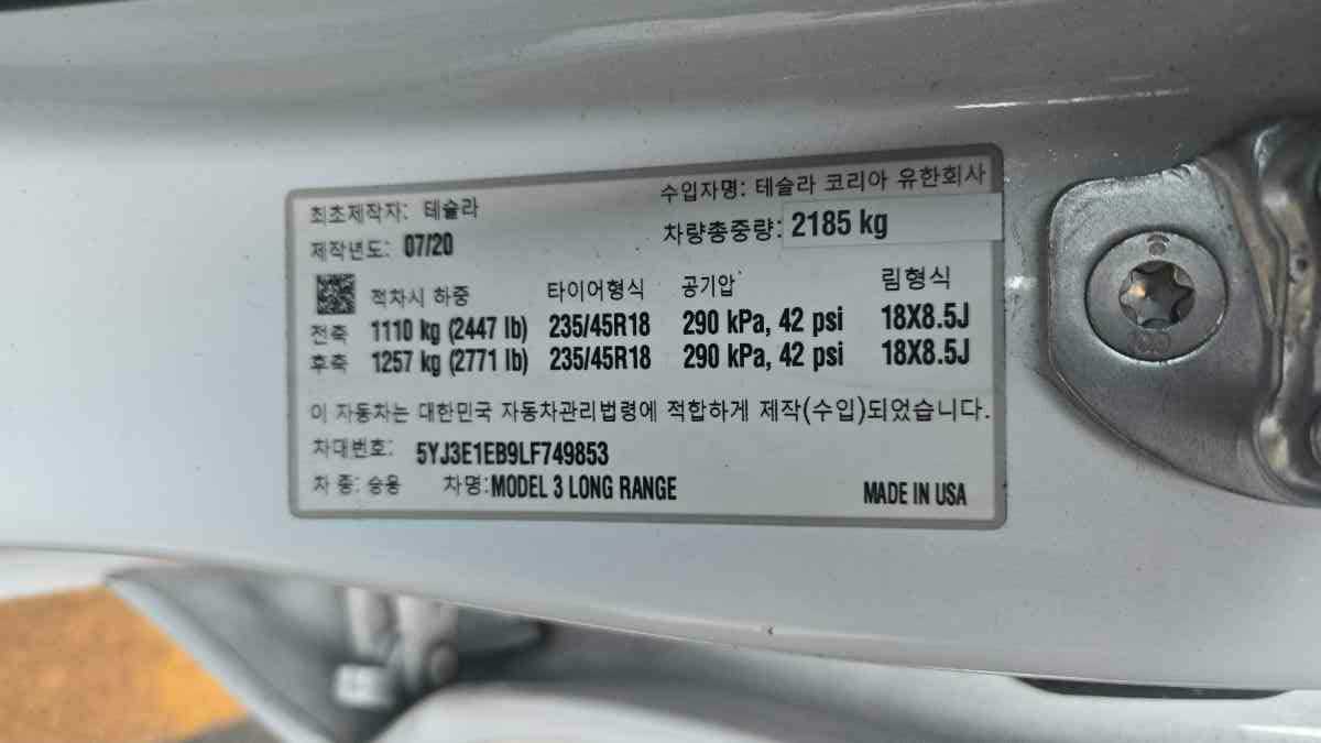 Description | 2020 Model 3 Long Range (749853) pre-producted |