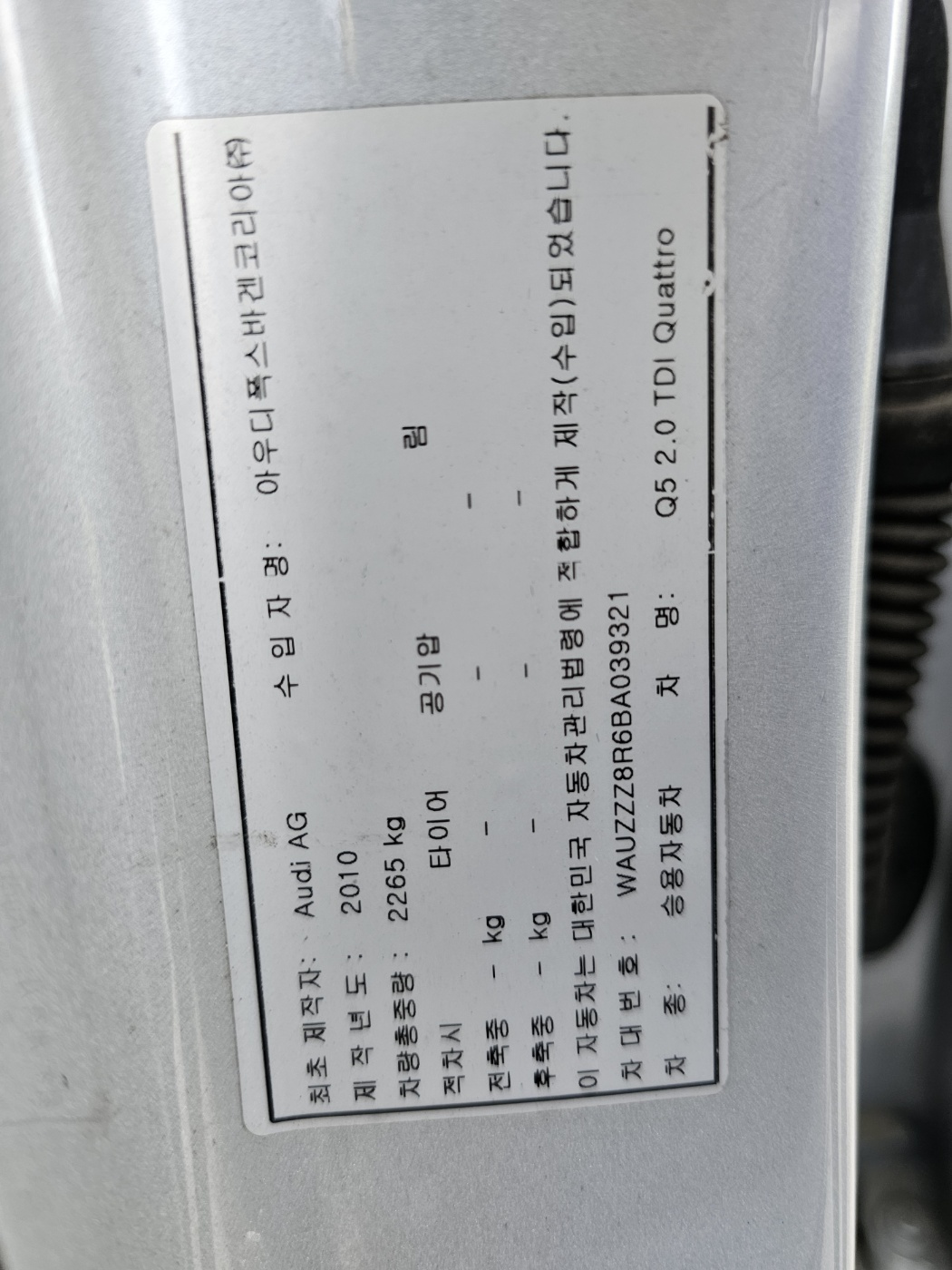 2011 Audi Q5 2.0 TDI quattro (S/N: 039321)