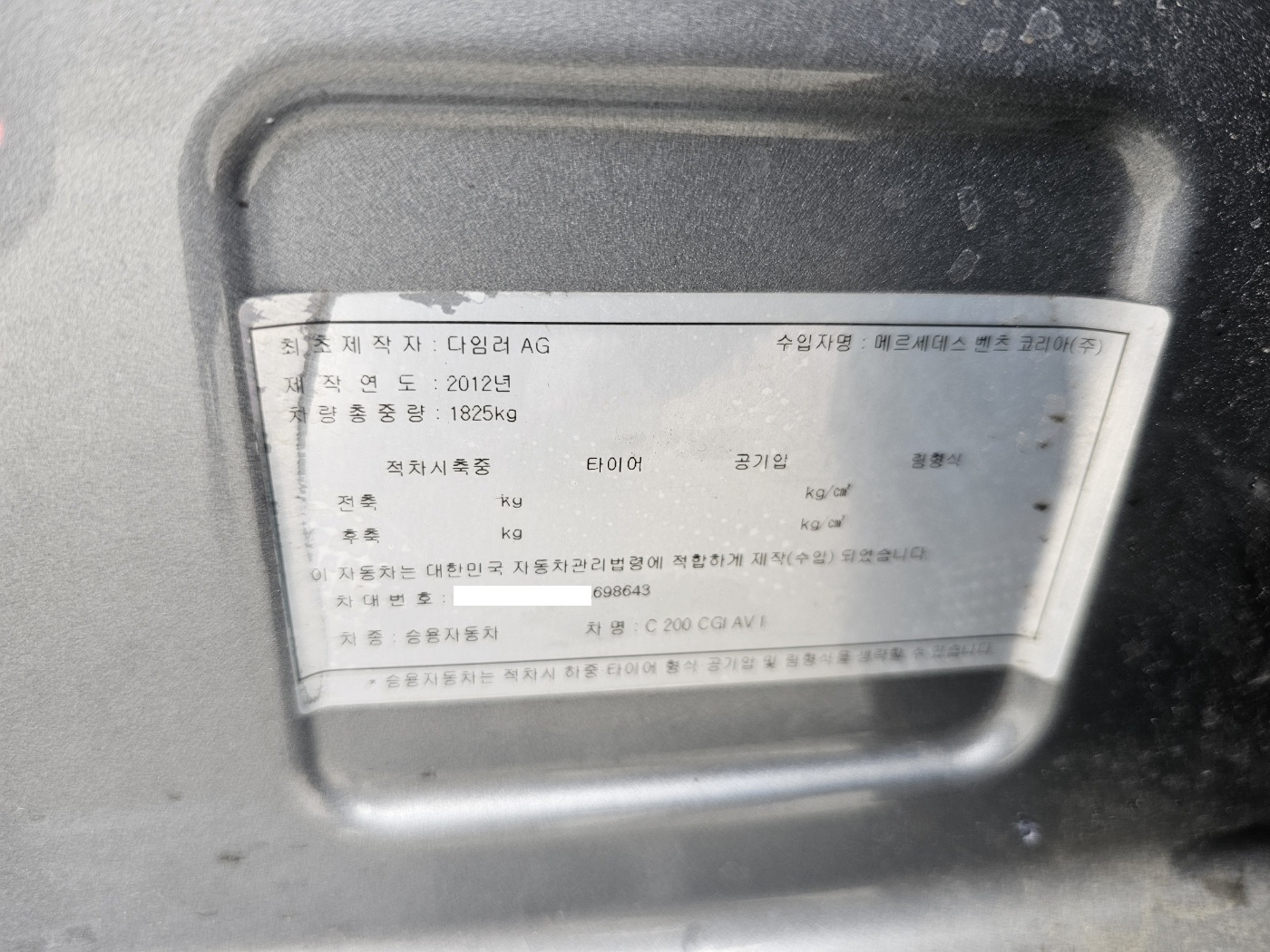 2012 Benz C-Class W204 C200 CGI (S/N: 698643)
