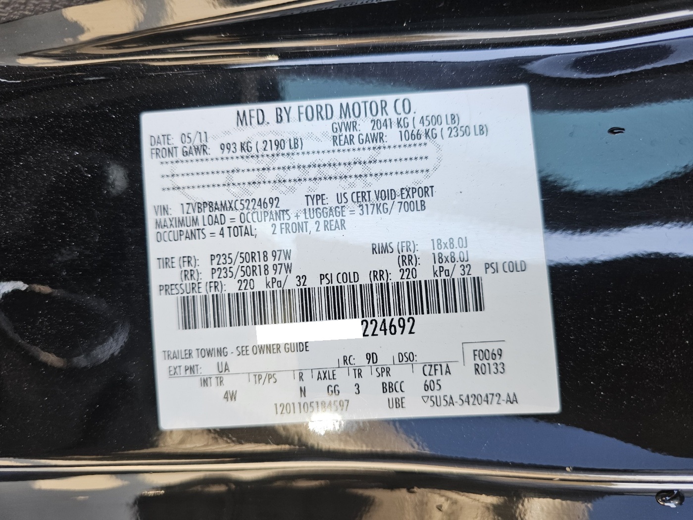 2012 Ford Mustang Coupe (S/N: 224692)
