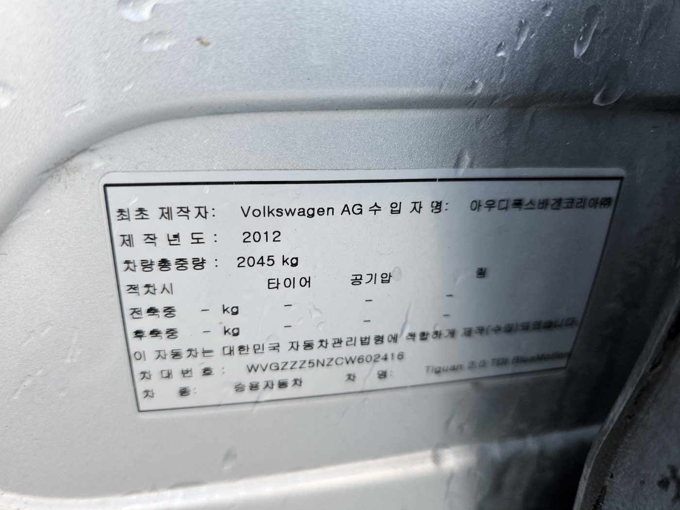 2012 Volkswagen New Tiguan 2.0 TDI Premium (S/N: 602416)