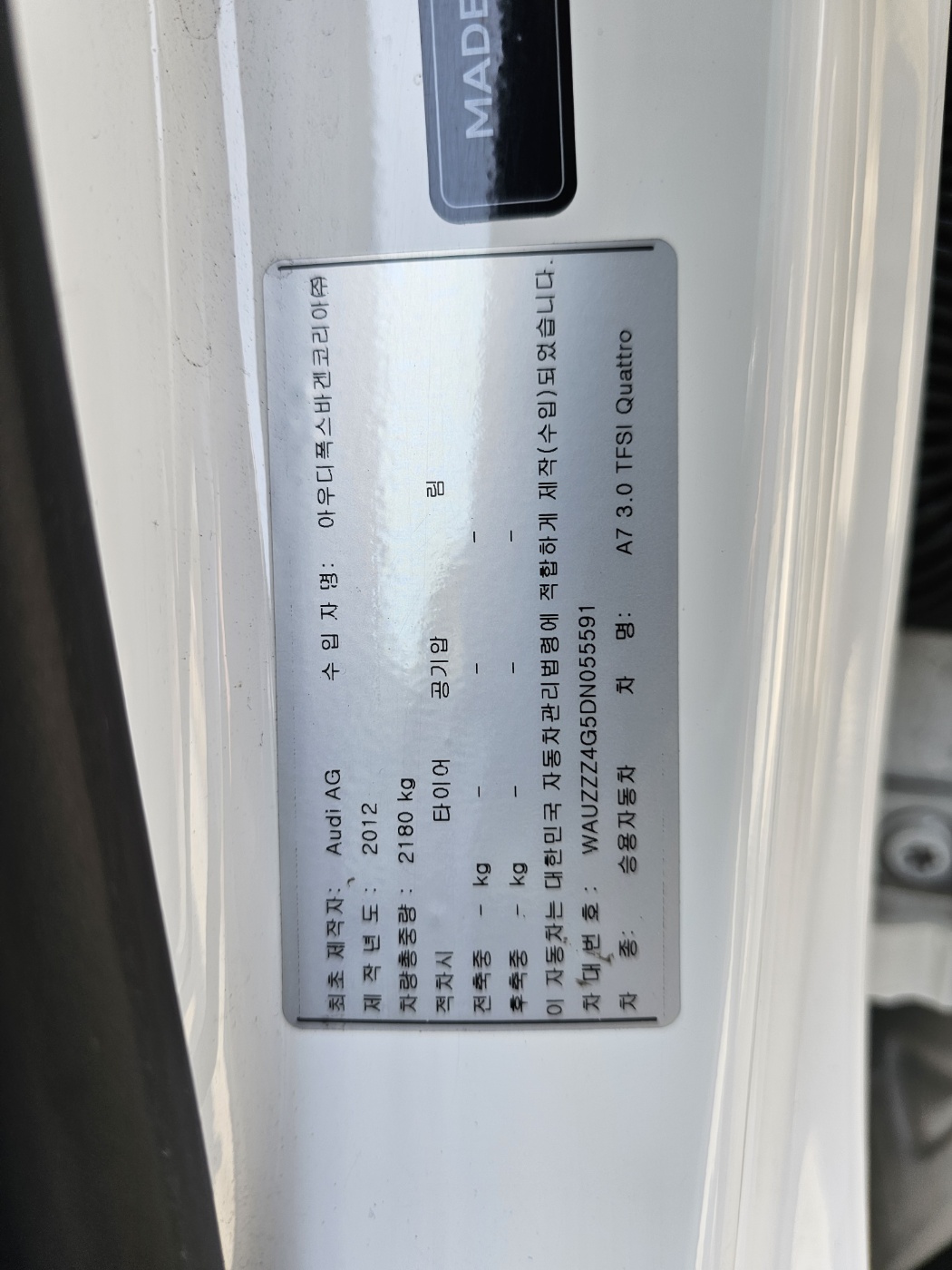 2013 Audi A7 3.0 TFSI quattro entry (S/N: 055591)