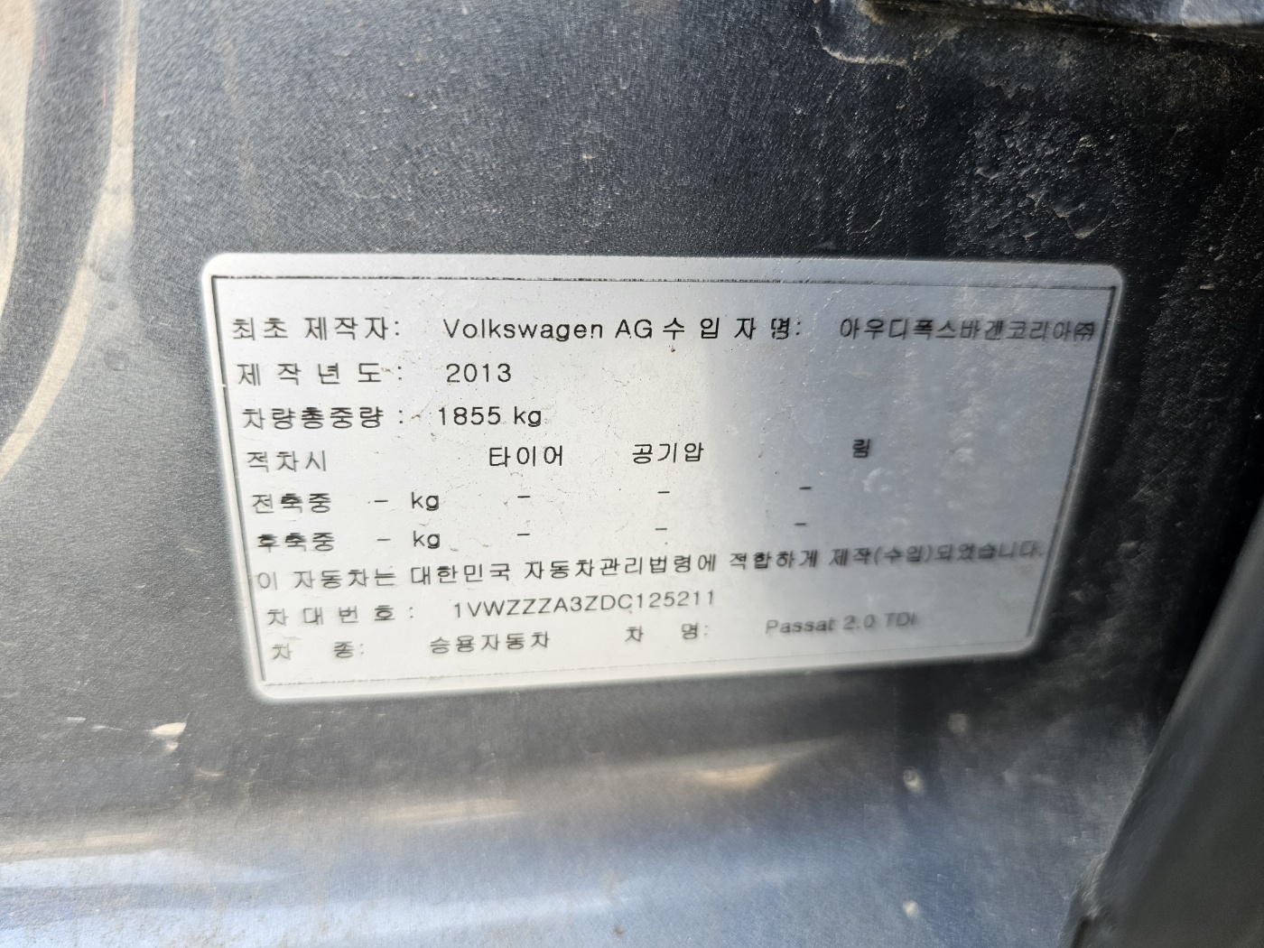 2013 Volkswagen The New Passat 2.0 TDI (S/N: 125211)
