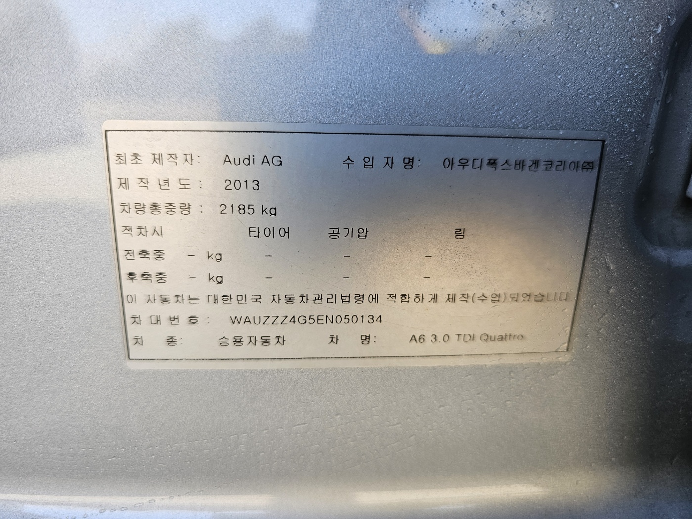 2014 Audi New A6 3.0 TDI Quattro (S/N: 050134)