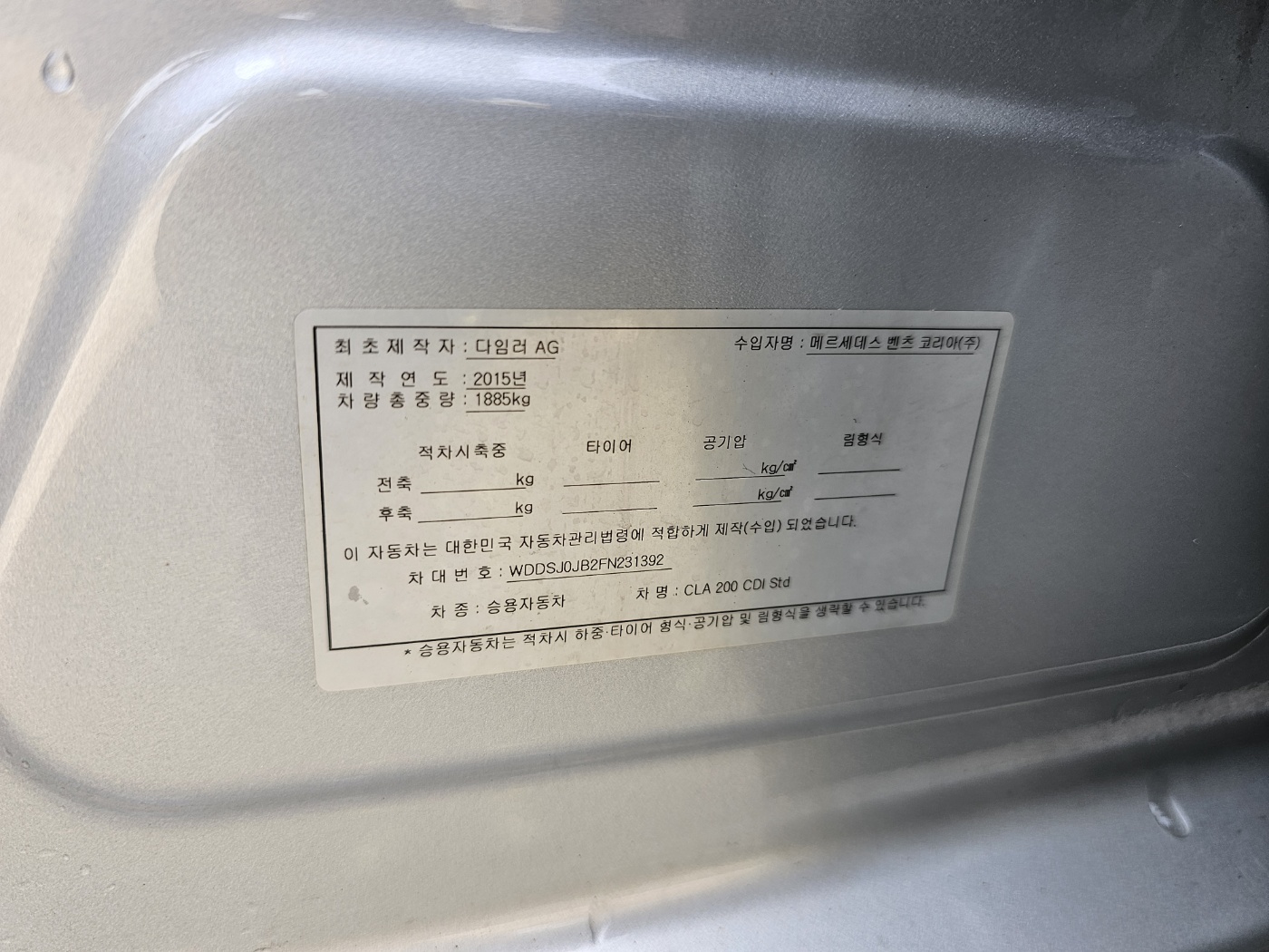 2015 Benz CLA-Class CLA 200 CDI (S/N: 231392)