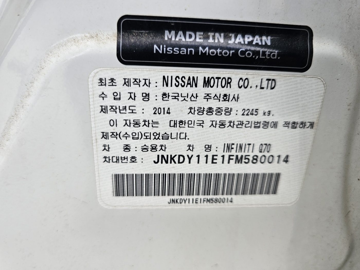 2015 Infinity Q70 3.0d (S/N: 580014)