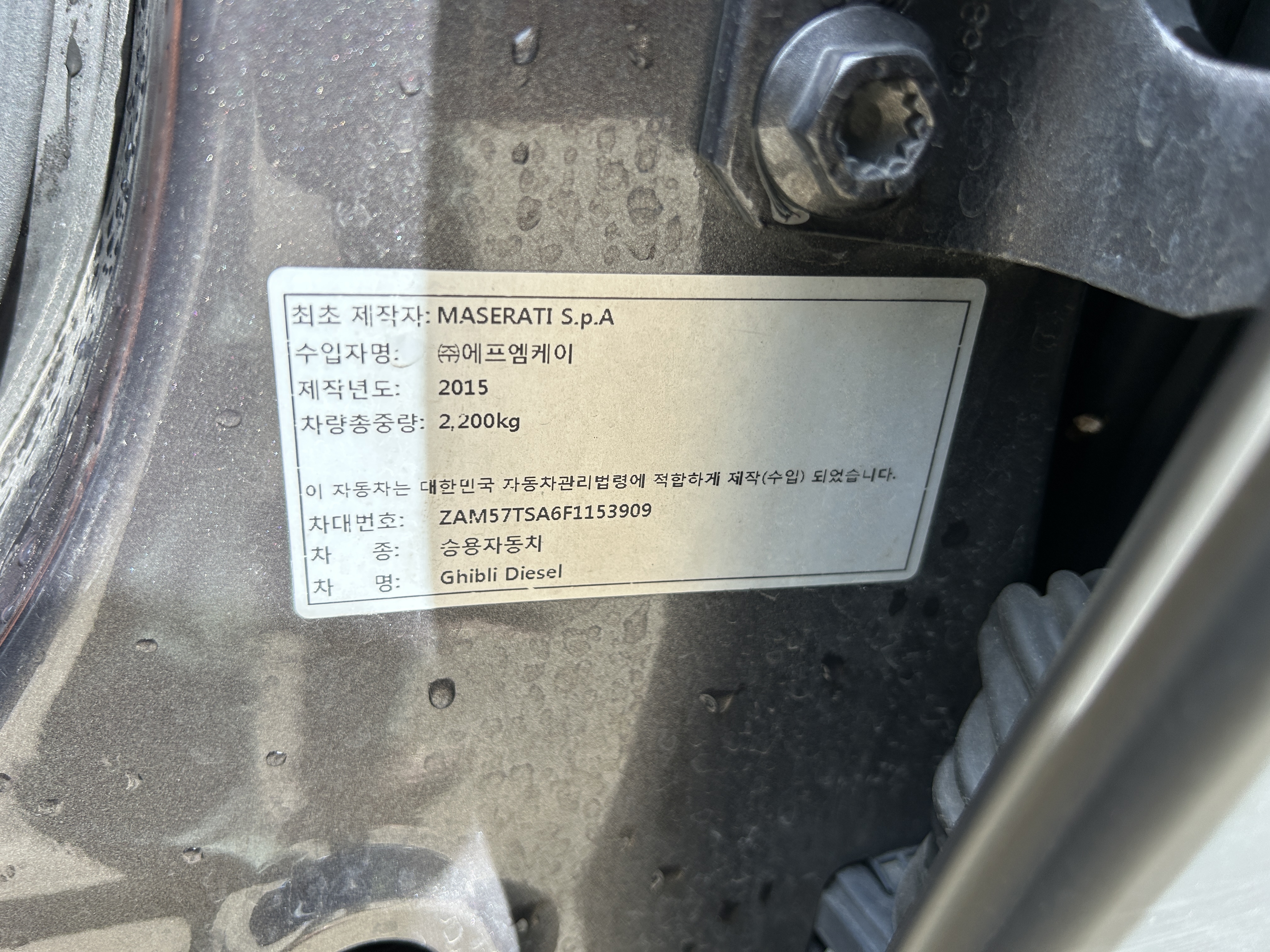 2015 Maserati Ghibli 3.0 Diesel (S/N: 153909)