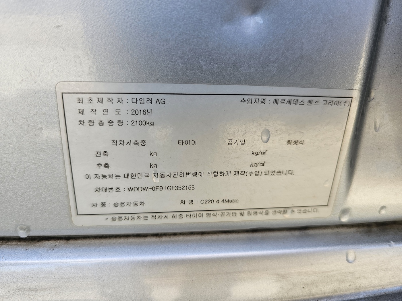 2016 Benz C-Class W205 C220 d 4MATIC (S/N: 352163)