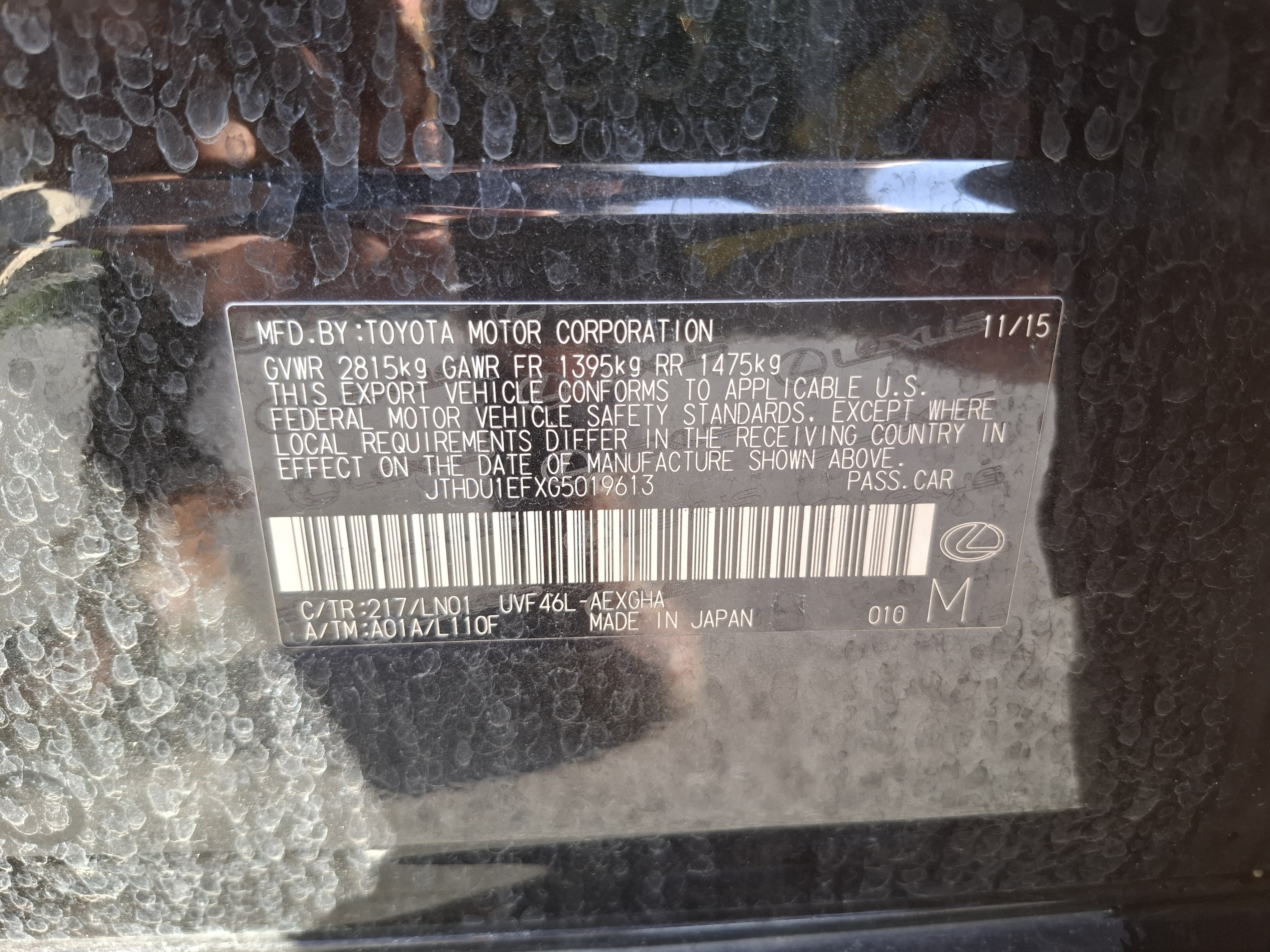 2016 Lexus LS600hL (S/N: 019613)