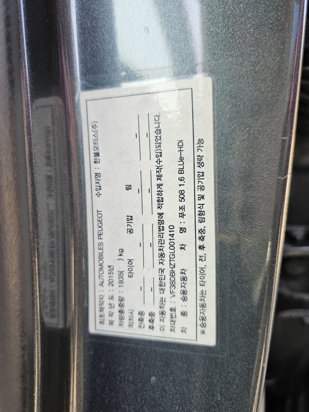 2016 Peugeot 508 1.6 BLUEHDI Allure (S/N: 001410)