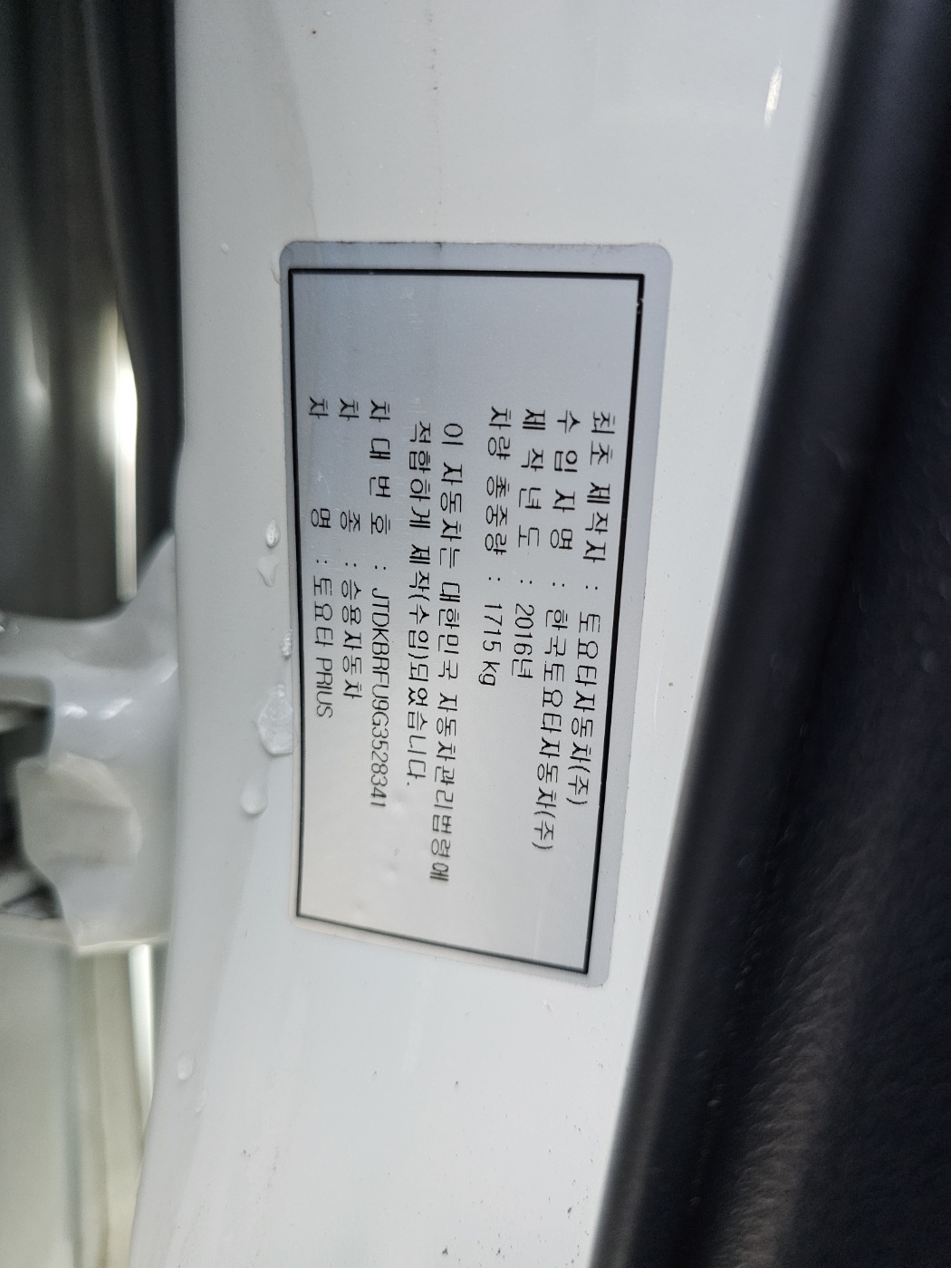 2016 Toyota Prius 4th gen 1.8 E (S/N: 528341)