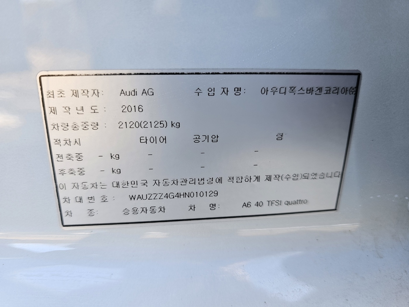 2017 Audi A6 40 TFSI quattro (S/N: 010129)