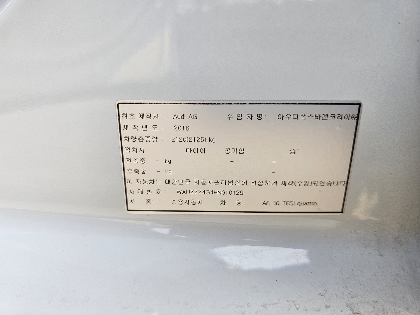 2017 Audi A6 40 TFSI quattro (S/N: 010129)