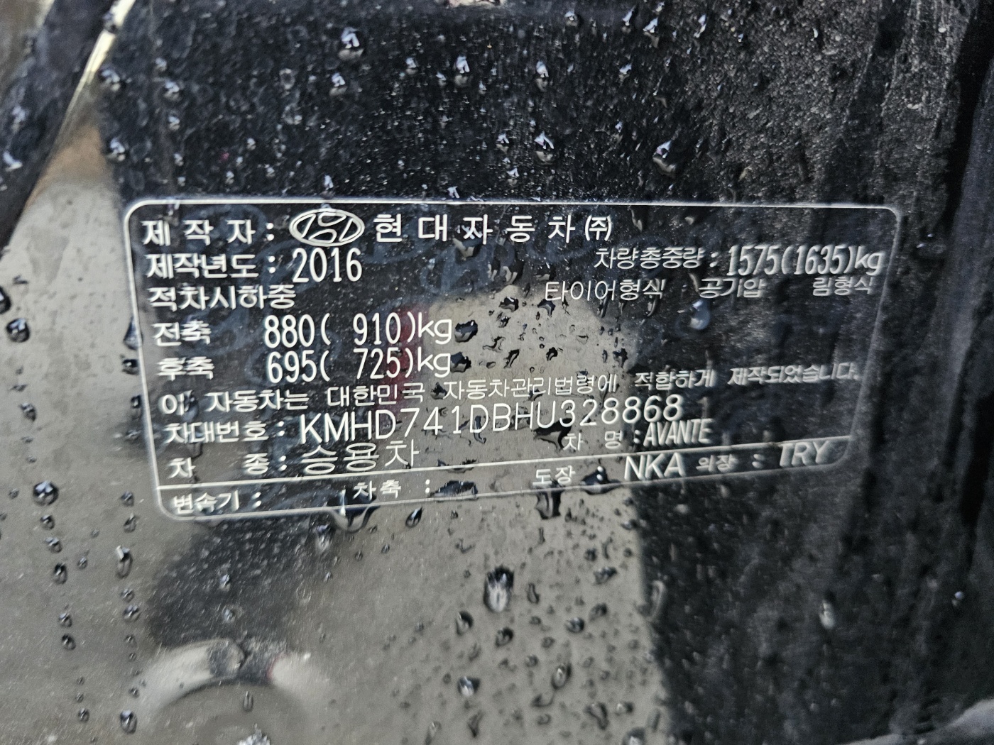 [Reserved]2017 Avante AD 1.6 GDI Smart (S/N: 328868)