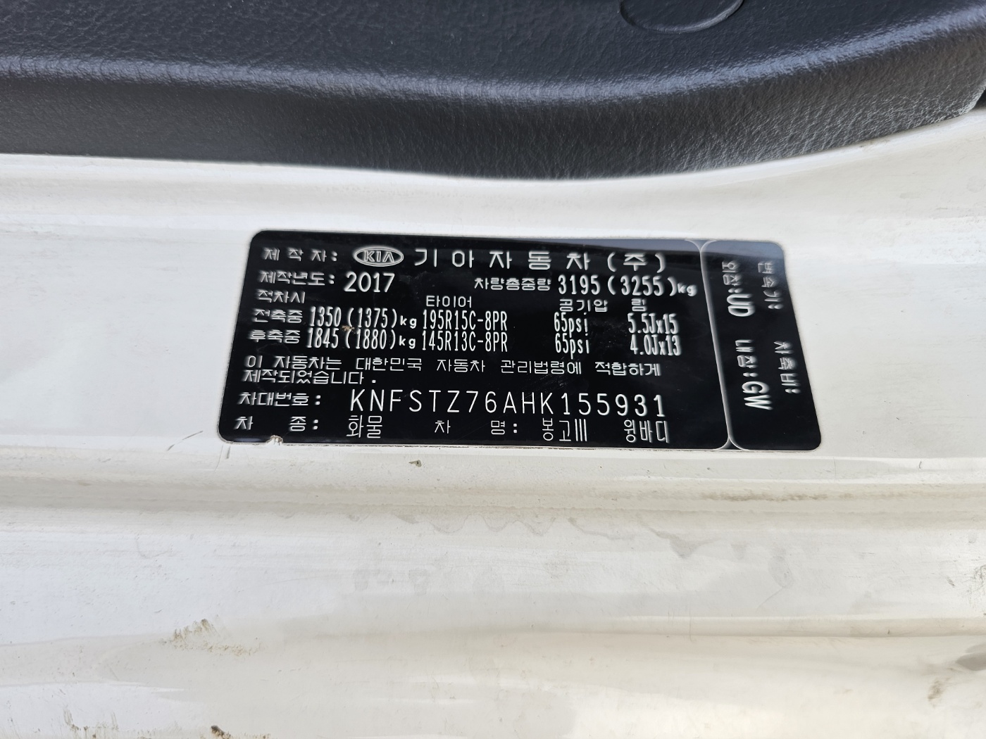 2017 Bongo 3 1.0-ton King Cab CRDi Luxury (S/N: 155931)