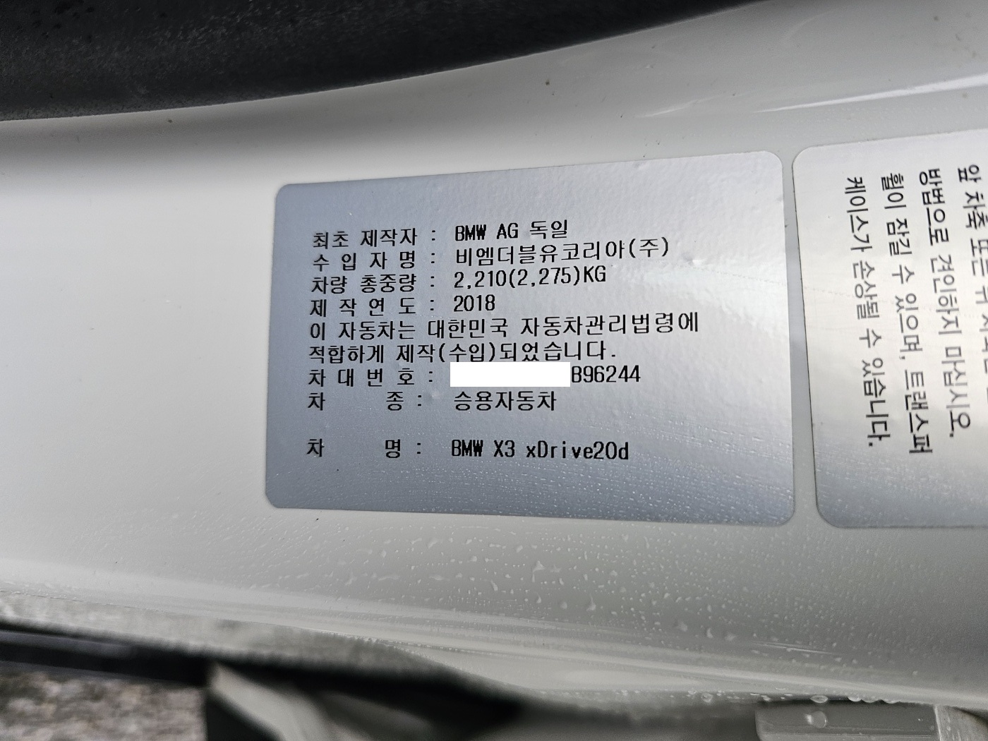2018 BMW X3 (G01) xDrive 20d (S/N: B96244)
