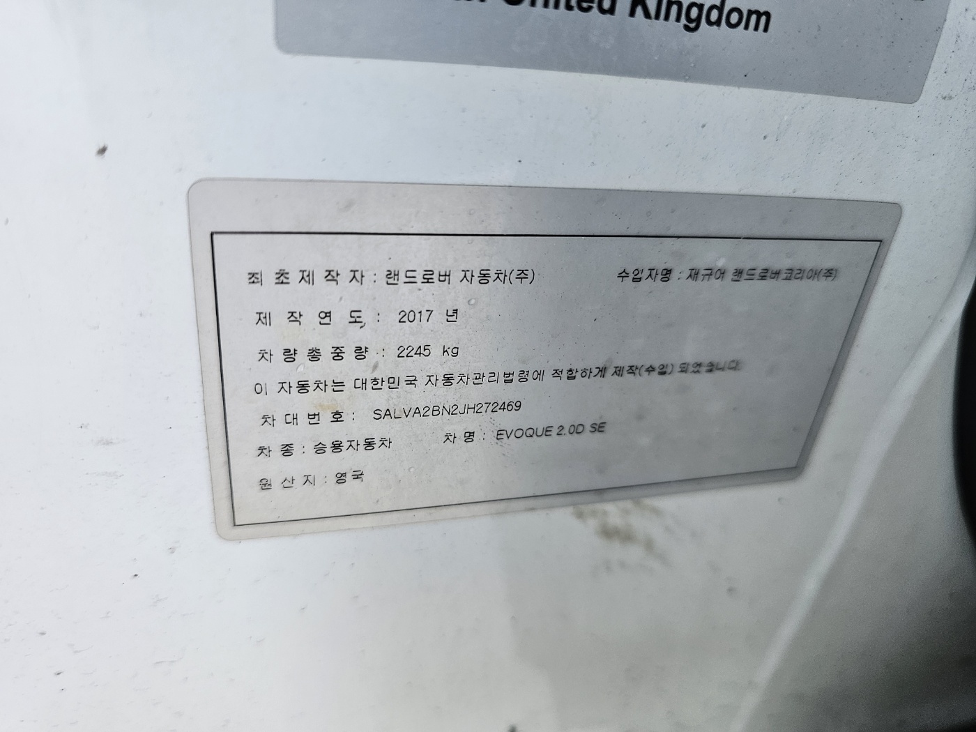 2018 Land Rover Range Rover Evoque 2.0 TD4 SE (S/N: 272469)