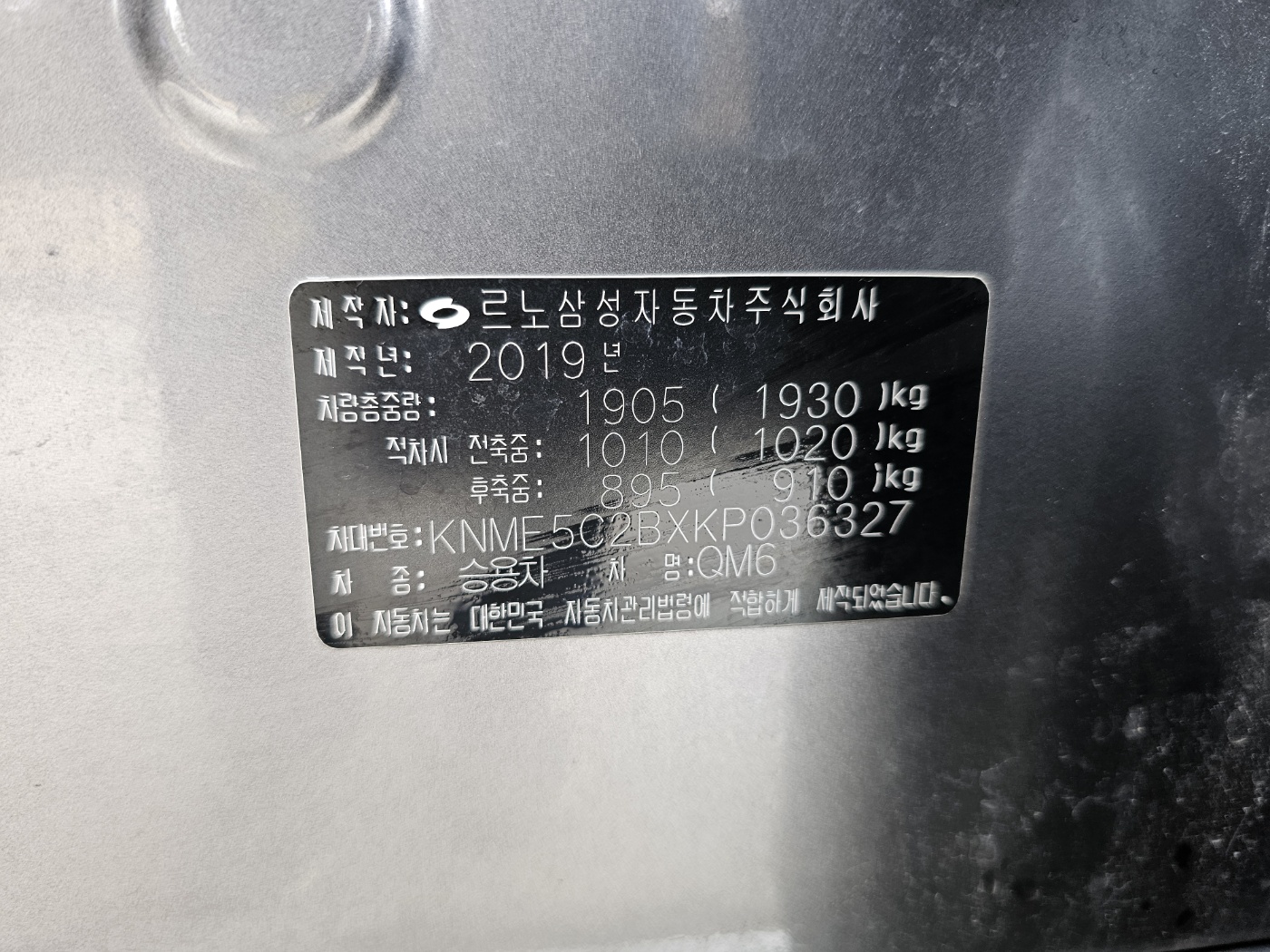2019 QM6 Gasoline 2WD RE Signature (S/N: 036327)