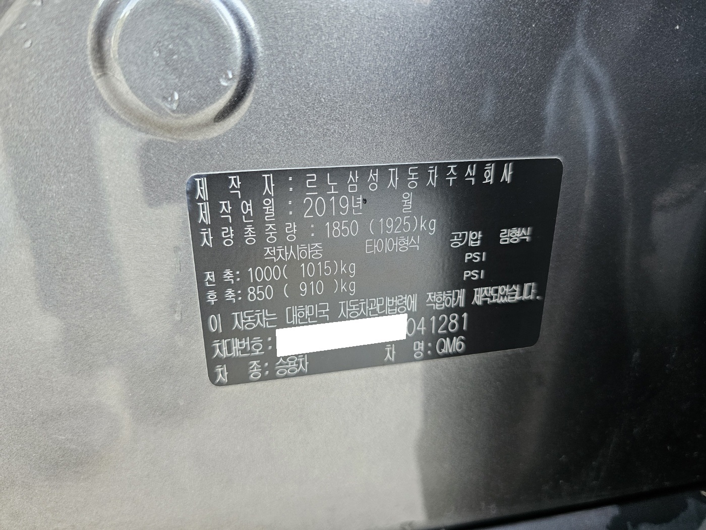 2019 QM6 Gasoline 2WD (S/N: 041281)