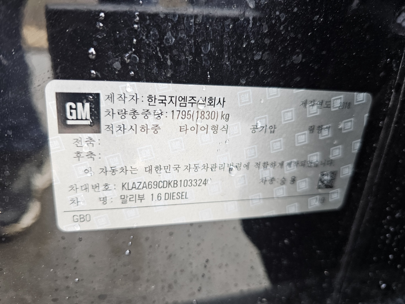 2019 The New Malibu Diesel 1.6 LT Premium (S/N: 103324)
