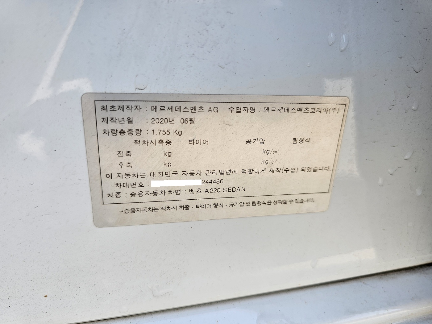 2020 Benz A-Class W177 A220 hatchback (S/N: 244486)