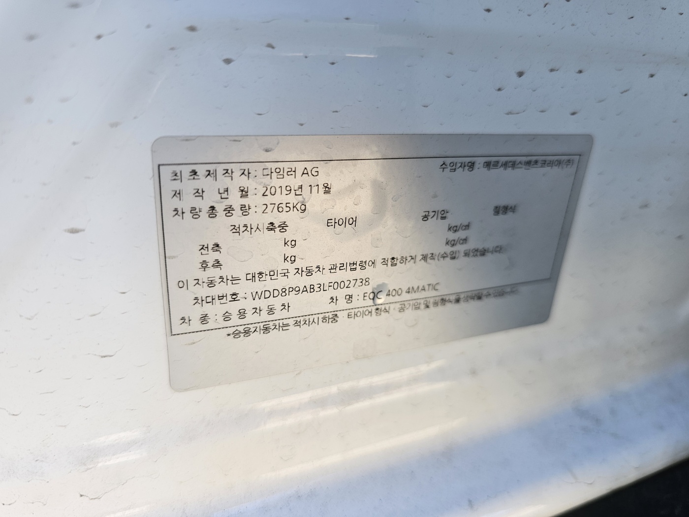 2020 Benz EQC N293 EQC 4MATIC (S/N: 002738)