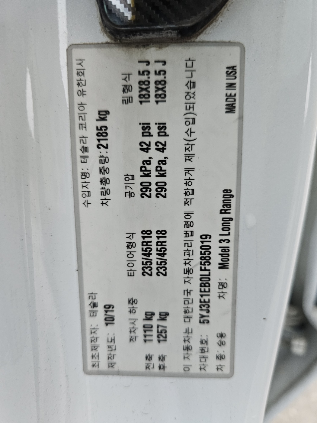 2020 Model 3 Long Range (S/N: 585019)