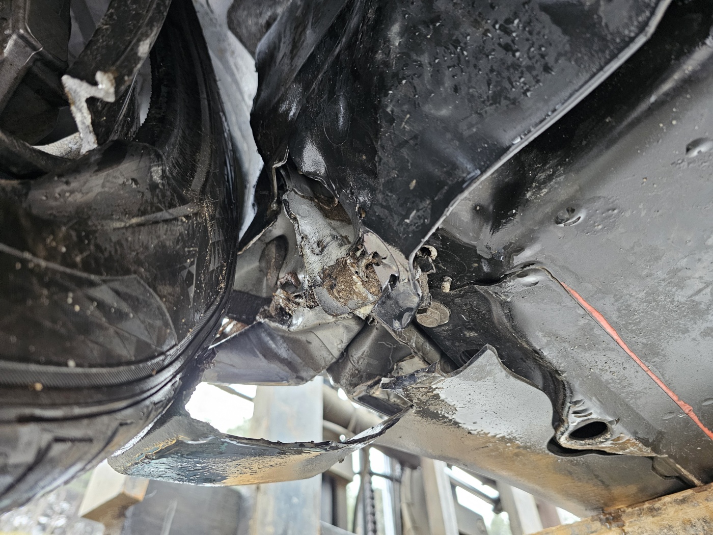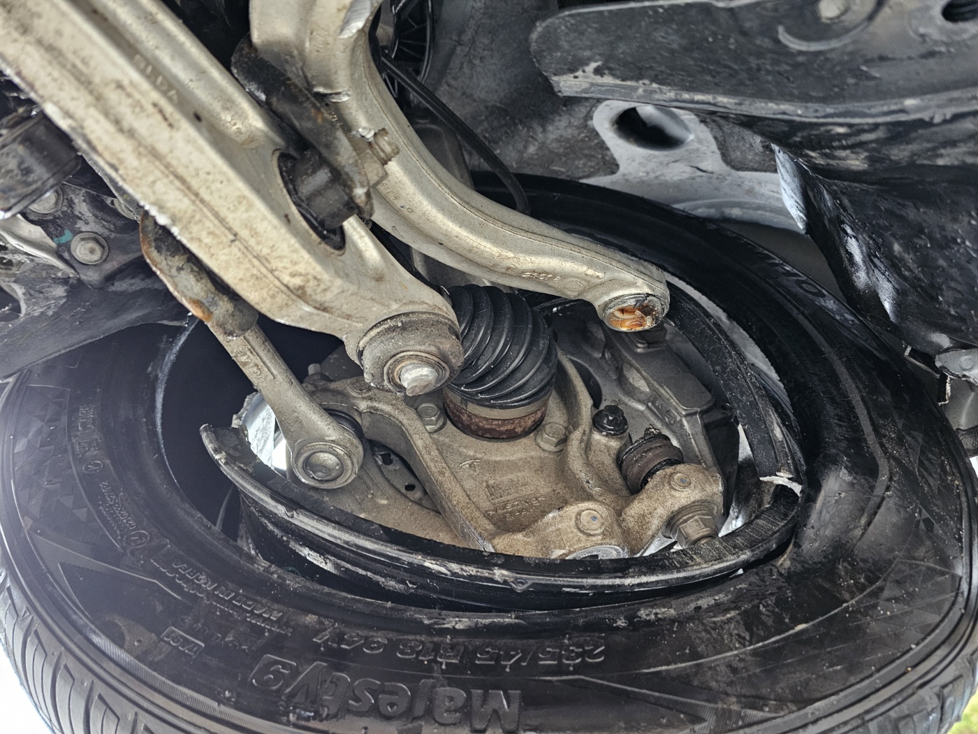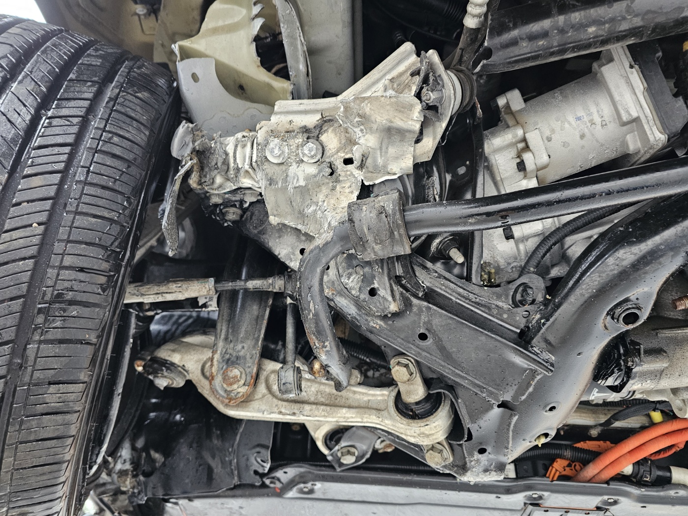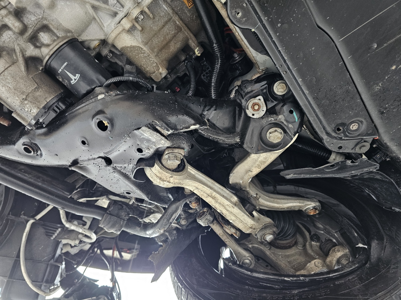 Non driveable due to broken lower arm and underbody damage