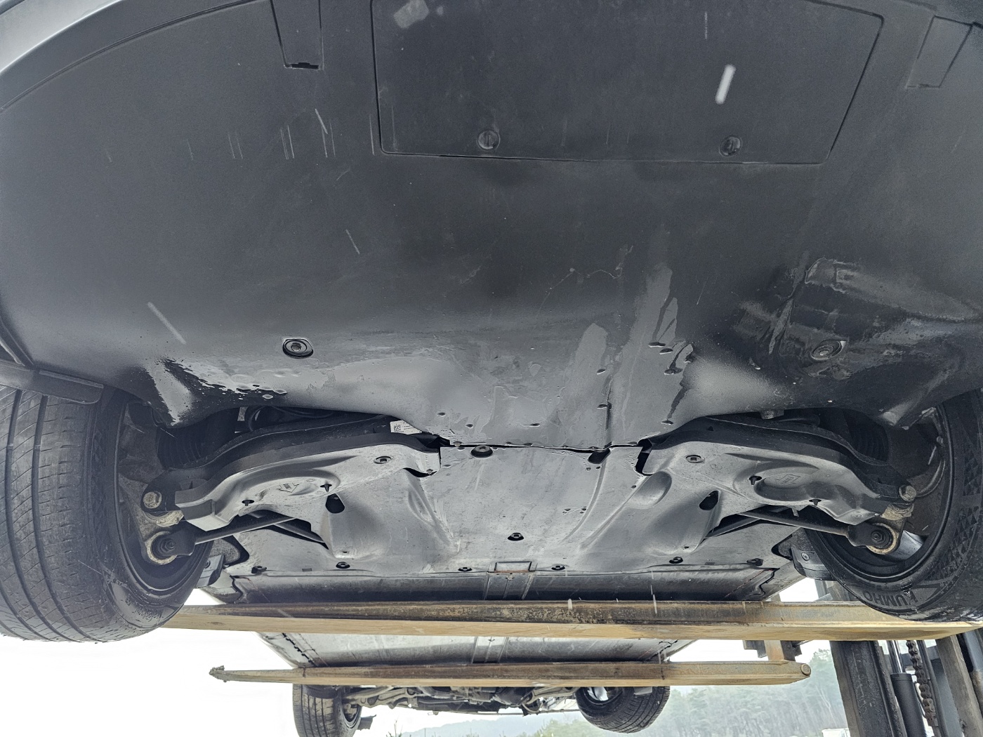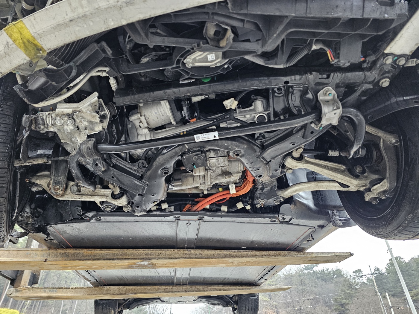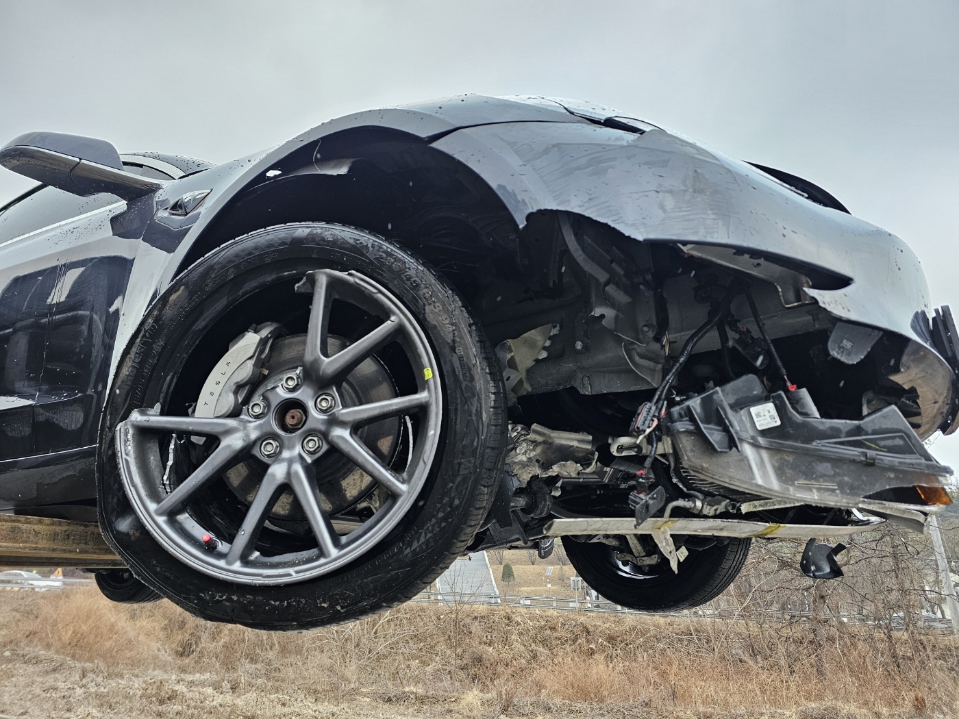 Non driveable due to broken lower arm and underbody damage