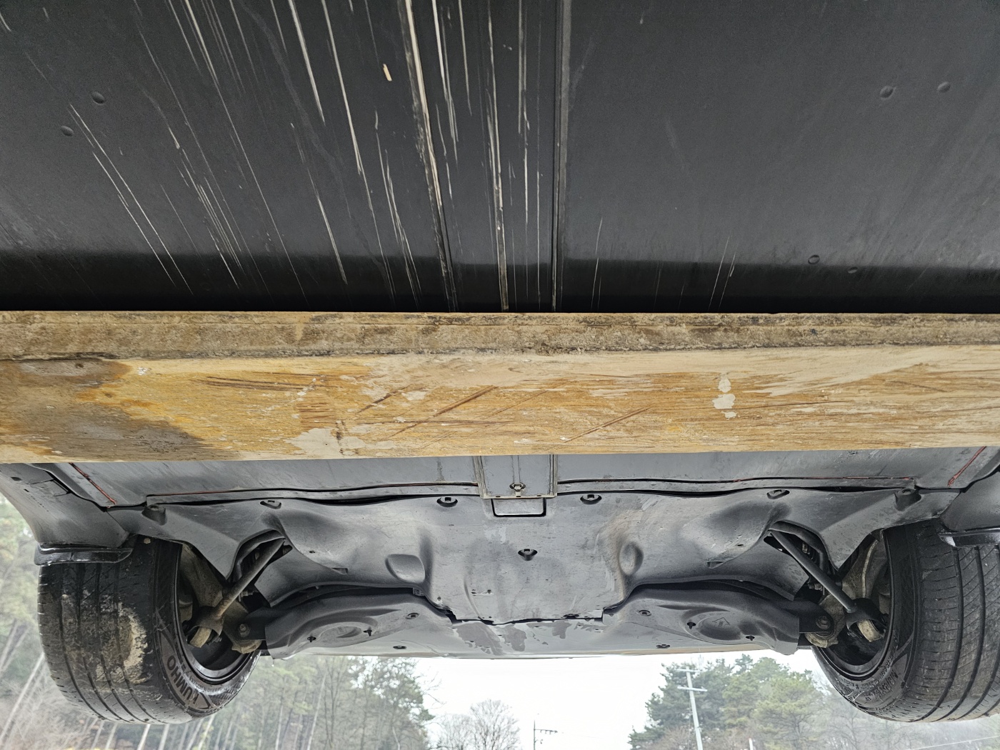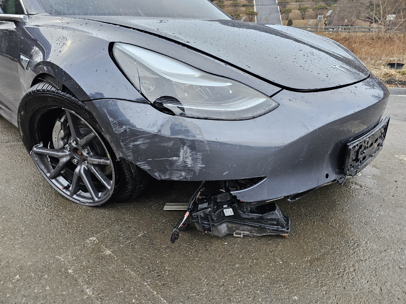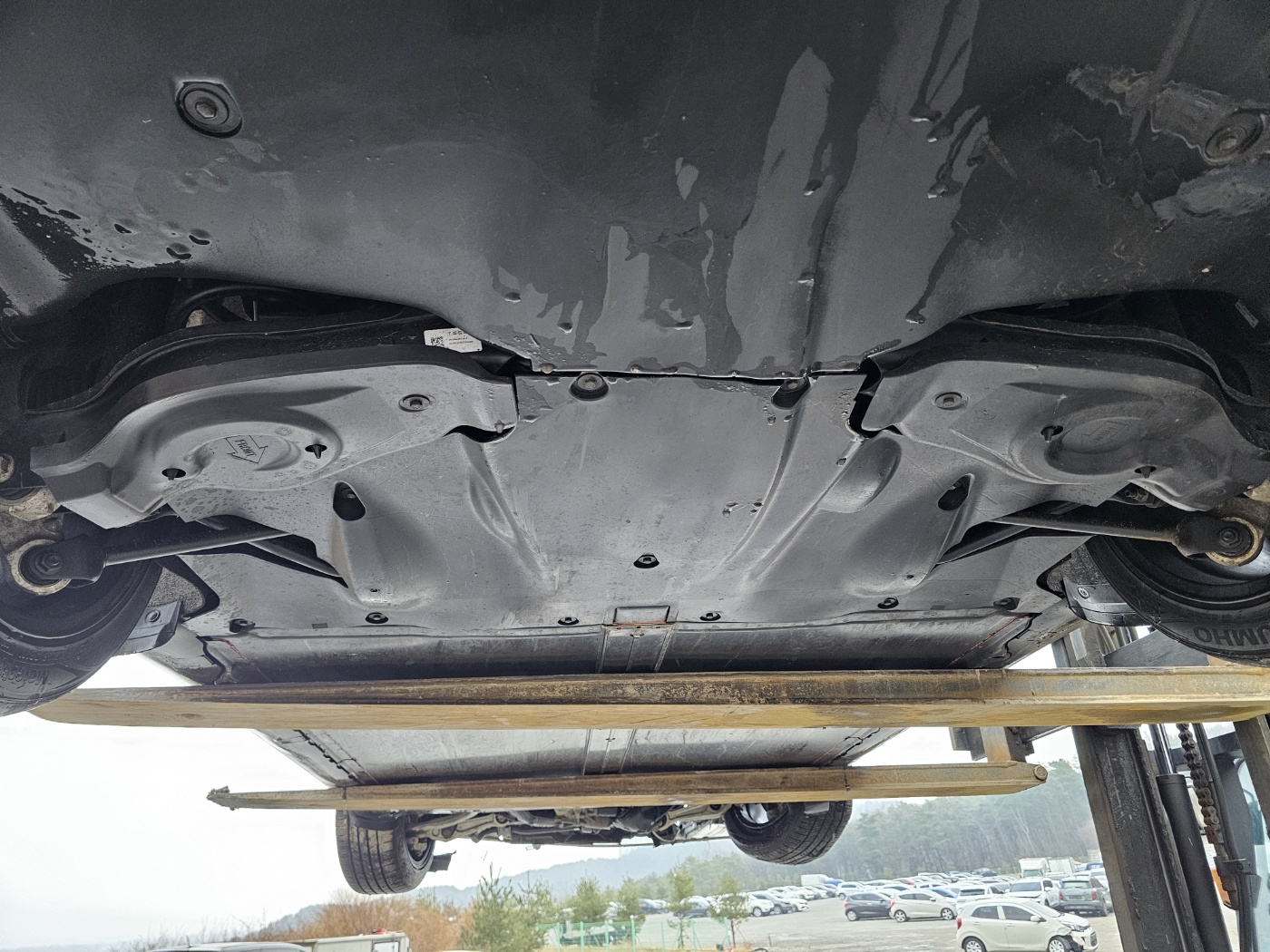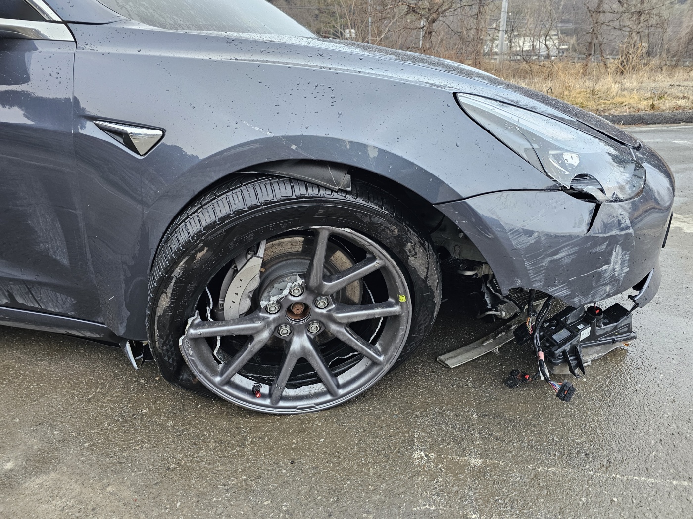 Non driveable due to broken lower arm and underbody damage