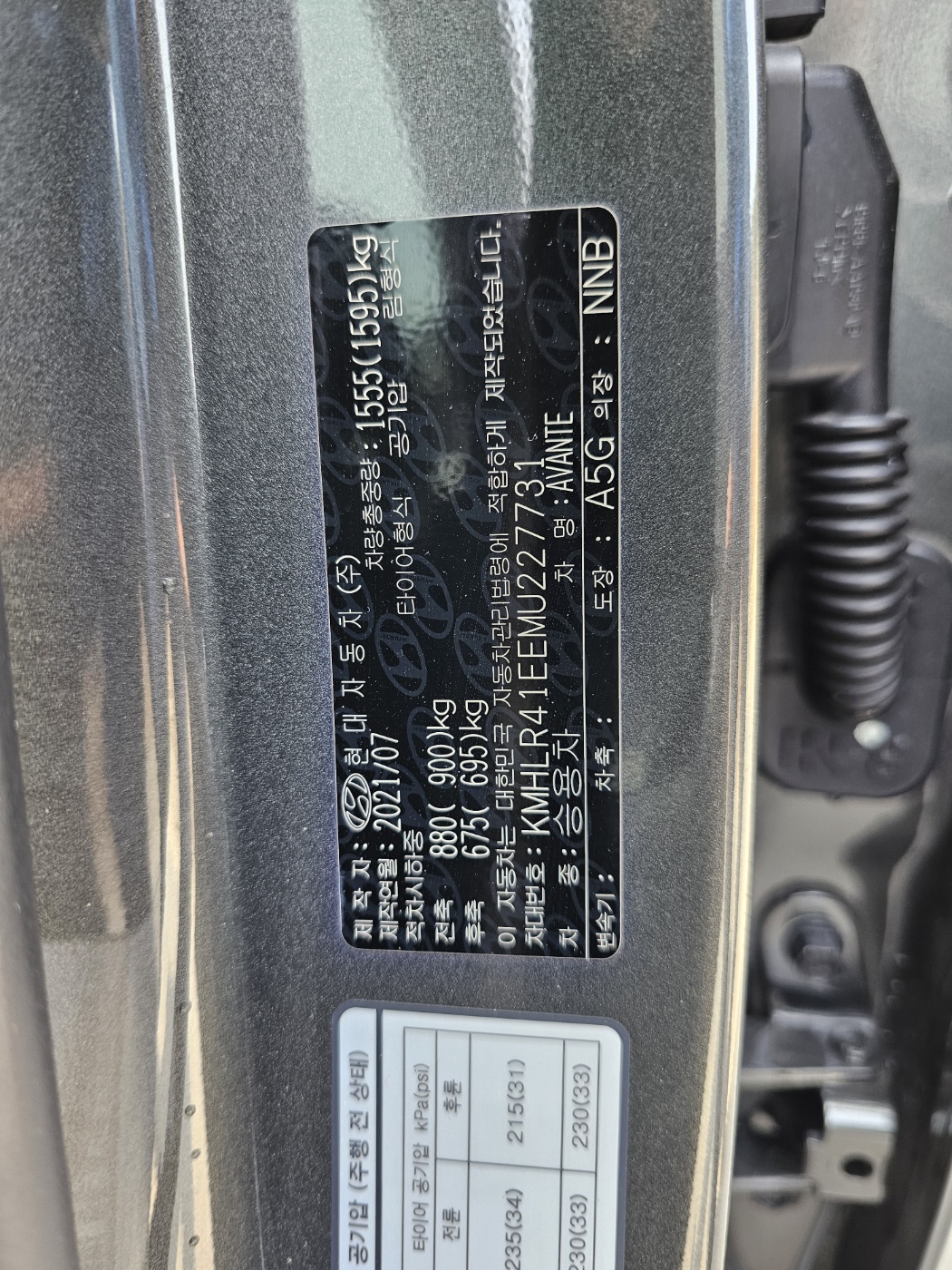 2021 Avante (CN7) 1.6 Inspiration (S/N: 227731)