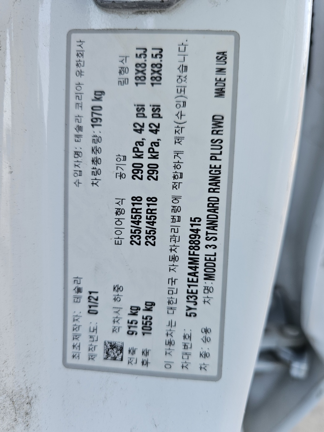 2021 Tesla Model 3 Standard Range Plus (S/N: 889415)