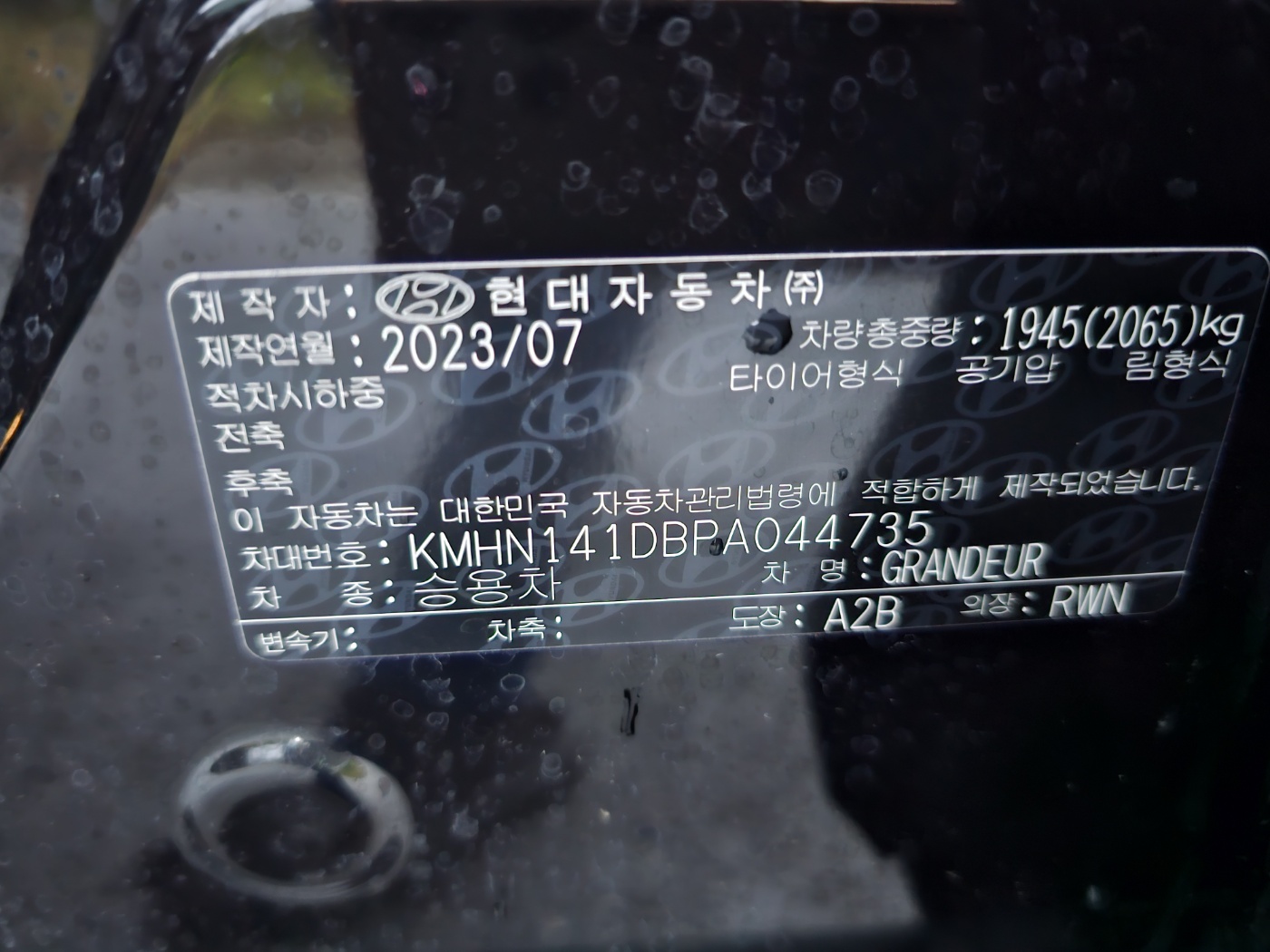 2023 Grandeur (GN7) Gasoline 2.5 2WD Premium (S/N: 044735)